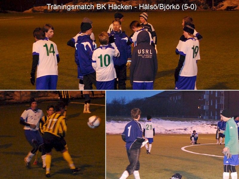 BK Häcken - Hälsö/Björkö (5-0) Hälsö/Björkös mål gjordes av: Inga mål denna dag, men det var mycket nära vid ett par tillfällen, både stolpskott och ribbskott, vi var värda ett bättre öde. FOTON FRÅN MATCHEN MOT HÄCKEN - Bortamatch mot BK Häcken och vi visste att detta skulle bli en mycket tuff uppgift. Lite småkallt och ruggigt men de flesta killarna såg tända ut på uppvärmningen och såg fram emot att få spela match på denna fina konstgräsplan på Slätta Damm. Idag testade vi nu med ett nytt spelsystem, bl.a. för att få en bättre balans i spelet 4-2-3-1 skulle man kunna benämna systemet och när domaren blåste igång matchen så var det full fart från start. (6min) Mycket bra spel där Erik slår en fin passning ut till Marcus på vänsterkanten, som sedan spelar in till Forse, som får på ett skapligt skott ur dålig vinkel. Annars är det jämnt spel i början av halvleken, även om Häcken har lite mer av bollen, så ser det stabilt ut. (9min) Häcken kommer i ett fint anfall i djupled och får ett halvt friläge, där Häckenspelaren försöker chippa över Wille i målet, men Wille får fingrarna på bollen och styr bollen utanför. - (11min) Vi får en hörna som sedan hamnar hos Marcus, som tar ner bollen och passar Josh, som skjuter och får till ett bra skott, men skottet går strax utanför. Matchen böljar fram och tillbaka och Häcken skapar några halvchanser, men våra killar gör en bra insats i denna halvleken även om Häcken ser lite vassare ut. Backarna anförda av Jernarp och Emil styr det mesta, men på Häckens högerkant har dom en väldigt bra och svårstoppad spelare, som ställer till en del problem för oss. Balansspelarna Erik och Josh kommer bra med i spelet och alla krigar och ger sitt yttersta. Man får en känsla av att det blir bättre och bättre för varje träningsmatch. - (25min) En mycket bra djupledsboll från Henke till Forse, som springer ifrån sin försvarare och dribblar sig förbi målvakten, kommer tyvärr lite långt ut i vinkel annars hade han bara kunnat skjuta in bollen i mål, så han hör att Henke ropar inne i målområdet och försöker passa, men Henke når inte bollen, matchens bästa målchans hittills. Nu är vi inne i en bra spelperiod och i den (30min) får Henke en perfekt djupledsboll och Henke löper ifrån sin försvarare och skjuter ett bra välriktat skott, men tyvärr så träffar han målvaktens högra stolpe, nu har vi otur. För bara minuten senare (31min) slår Häcken en fin djupledsboll ut på högersidan och skott 1-0 i mål, det är bara att komma igen. (38min) Ännu ett mönsteranfall där Josh rycker upp från halva plan, närmar sig straffområdet och passar in till Forse som skottfintar med vänstern och lurar bort försvarare och skjuter (hör och häpna) med höger och träffar klockrent i ribban, nära krysset, den var värd ett bättre öde. 1-0 i halvlek och vi möter ett mycket bra lag, men killarna gör en mycket bra insats och stundtals finns flera fina spelsekvenser. - 2:a halvlek kunde starta och vi gör nu några byten, in med Tide och Jesper, matchen kunde starta igen. Tide såg het ut och verkade pigg i benen och satte sig i respekt direkt på högerkantsbacken. Spelet fortsätter ungefär som i den första halvleken, men vi hade en del problem med Häckens väldigt snabba omställningar, det var en tempoväxling när dom bröt bollen och gick till anfall och i den (5min) kom just en snabb omställning och en fin genomskärare, där Häckens spelare går förbi både back och Wille och rullar enkelt in bollen till 2-0. (10min) Nu skapar vi lite tryck igen mot Häckens straffområdet och vi får en trippelchans, när Henke driver in bollen i straffområdet och skjuter, men målvakten räddar, bollen ut till Forse som skjuter på en Häckenspelare och sedan går bollen till Marcus som även han försöker trycka in bollen i mål, men en Häckenspelare är i vägen igen, där skapade vi lite oreda och några bra målchanser. (16min) 3-0 ett snygg långskott från högerkanten otagbart för Wille i målet efter ännu en snabb spelvändning från Häckens sida, det gick undan. (22min) Nu har vi bra press på Häckens planhalva igen och Jesper snurrar nere i vänsterhörnet, kommer förbi och skjuter (eller hårt inlägg) men bollen går förbi målet. - (27min) 4-0, nästan en kopia på 3-0 målet, ett snygg långskott från högerkanten otagbart för Wille i målet. (39min) Ett onödigt sista mål för Häcken där vi blev lite bortsnurrade i straffområdet. Totalt sett ändå en bra insats, där det fanns flera bra spelsekvenser och visst var vi värda minst 2 mål eftersom vi hade både stolpträff och ribbträff, men sån är fotbollen. Nu gäller det bara att bygga vidare och det verkar som om även killarna tror på detta spelsystemet, det skapar en bättre balans över planen och en större säkerhet, bara vi kan lära oss att täppa till ytorna bättre och ligga närmre i våra markeringar, så att inte motståndarna hinner och kan vända upp. Detta kommer vi nog att märka när alla blir lite mer varma i kläderna och får spelat in sig. - Nu väntar ny träningsmatch på LÖR 20/3 klockan 11:15 mot IFK Fjärås P-93/94 på Kungsbacka Sportcenter Inlags konstgräs. Välkomna även alla föräldrar och publik, passa på och ta en utflykt och titta på en fotbollsmatch och varför inte lite shopping på Freeport eller Kungsmässan efteråt. - LAGET SOM SPELADE: MÅLVAKT William Alexandersson BACKAR Rasmus Einarsson Andreas Jernarp Emil Henricsson Johan Åstrand MITT1 Joshua Berndtsson Erik Alexandersson MITT2 Andreas Forsmark Johan Forseström Marcus Wiseman TOPP Henrik Gustavsson RESERVER Samuel Tidefors William Wallich Jesper Hidetun