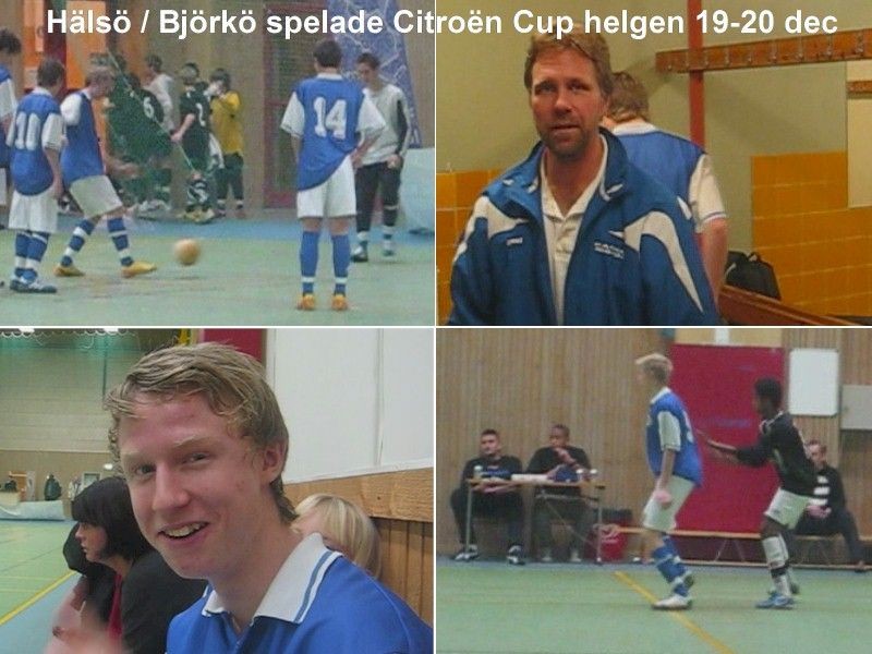 Citroën Cup och en chans för killarna att nu börja spela ihop sig, mer matchfakta ligger under Cuper/Citroën cup, här följer kortfattat om resultaten. CITROËN-FILMEN ligger under länken YouTube P-94 till vänster. Grupp 3: Hälsö/Björkö 2 - Gerdskens BK 1 (4-1) Hälsö/Björkö 2 - Sävedalens IF 2 (1-0) Hälsö/Björkö 2 - Fässbergs IF 2 (0-5) Hälsö/Björkö 2 slutade därmed 2:a i sin grupp och gick vidare till 8-delsfinal. Grupp 5: Hälsö/Björkö 1 - Gerdskens BK 2 (1-2) Hälsö/Björkö 1 - Sävedalens IF 1 (0-3) Hälsö/Björkö 1 - IF Warta 2 (2-3) SLUTSPEL: Slutspelet spelades under söndagen 20/12 enligt följande: 8-dels final: Hälsö/Björkö 2 - Sävedalens IF 1 (3-0) kvartsfinal: Hälsö/Björkö 2 - Rannebergens IF (0-2) - Semifinaler: Fässbergs IF 3 - Gerdskens BK 2 (1-2) Rannebergens IK - BK Häcken (0-3) Finalen: Gerdskens BK 2 - BK Häcken (2-1)