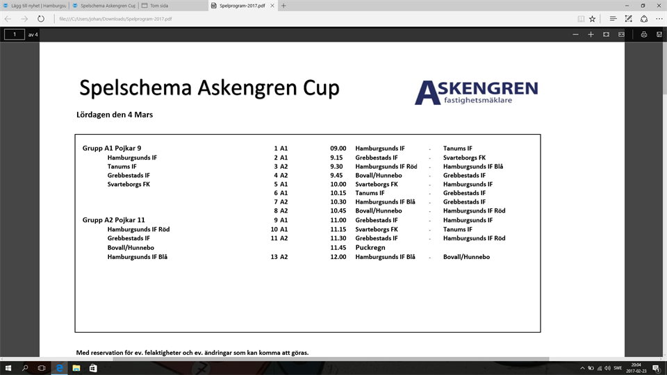 Då var det dags för cup nr 2 :) i Tanum på lördag 4/3 samling kl 8.45 i Tanum Vi vill gärna veta vilka som vill och kan vara med och spela! Svar vill vi gärna ha senast på Torsdag! Pojkar -06 27 feb 2017 18kommentarer