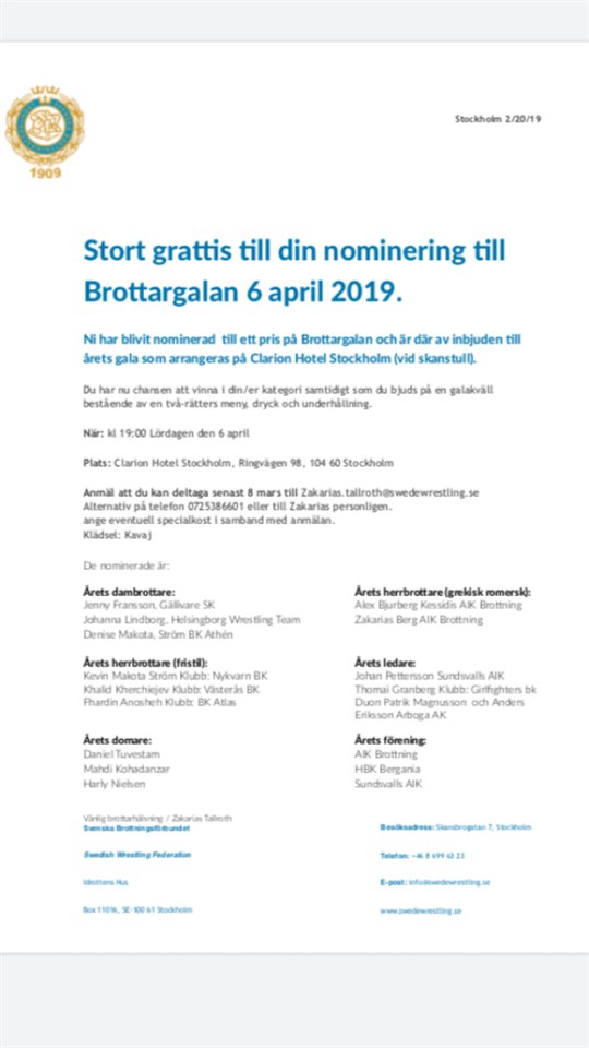 Klubben har blivit nominerad i kategorin Årets förening på den av Svenska Brottningsförbundet arrangerade BROTTARGALAN som hålls i Stockholm den 6/4 ! HBK Bergania 27 feb 2019 0kommentarer