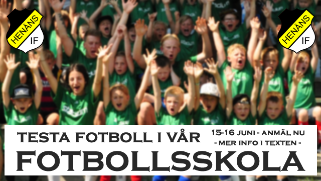 Helgen den 15-16 juni anordnas Henåns IFs årliga fotbollsskola på Ivars Färg Arena (Hällevi). Hit är alla varmt välkomna; både du som är nybörjare och du som har spelat förut! Det kommer att bli två dagar med mycket skratt och lek, blandat med många bra och lagom svåra övningar. Vi anpassar nivån efter individen! Barnen (födda 2005-2014) får varsin fotboll, T-shirt och vattenflaska. Det serveras även middag under dagarna. ANMÄLNINGAR ALT. 1: Swish 1. Swisha 430 kr till: 123 237 43 79 2. Du får ett sms tillbaka (räkna med ALT. 2: Överföring konto 1. Sätt över 430 kr till Orust Sparbank: Clearingnummer: 83535 Kontonummer: 3 773 691 5 - och märk med ditt mobilnummer. 2. Du får ett sms tillbaka (räkna med OBS! Anmälan måste vara klar senast söndag den 26/5 -men swisha redan nu så är det gjort! :) Ställ gärna frågor så hjälper vi dig! Tommy: 0704-16 68 52 F/P-11 21 apr 2019 0kommentarer