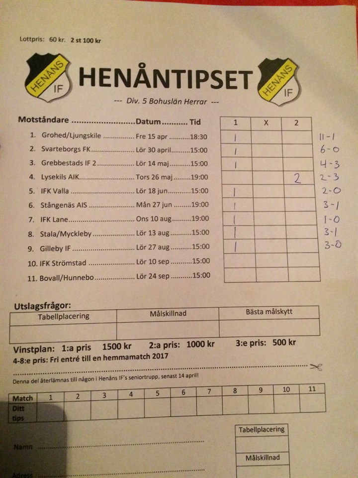 Med två hemmamatcher kvar är det dags att kolla av läget i Henåntipset... Efter att vi vid förra uppdateringen hade lite spridning i toppen så har det nu tajtat till sig rejält. Det har sedan senast varit idel hemmavinster och således ettor på tipset. Därför har en del optimistiska tippare gått ikapp i toppen och det är nu hela 17 tippare som är uppe i delad ledning på 8 rätt på de nio spelade hemmamatcherna. Det verkar alltså bli dramatiskt in i slutet - inte bara i serien utan också i tipset! /Tipsansvarig