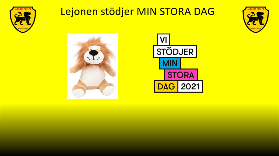 Supporterföreningen Lejonen har valt att stödja organisationen MIN STORA DAG och kommer under mars månad att sälja vår maskot ”Leo” till ett pris av 200:-. Vi riktar oss till både privatpersoner, handbollssupportrar, företag, ja alla som vill gå in och köpa ett eller flera lejon. Hela överskottet från försäljningen kommer att delas mellan organisationen Min stora dag och Lejonens insamling till nästa säsongs ”Lejonens stjärna”. Alla lejon som säljs kommer att skänkas till Blekingesjukhusets barnavdelningar och kommer förhoppningsvis att sprida lite ljus och glädje till barn som har det svårt. Tillsammans ger vi kraft och glädje till barn som kämpar. Du som vill stödja denna insamling och köpa ett eller, förhoppningsvis, flera Lejon skickar din summa till bankgiro 282–7285 eller swishar till 123 4488 417. Märk insättningen med ditt namn och ”Min stora dag”. Vi kommer under tiden insamlingen pågår uppdatera kontinuerligt här på hemsidan och redovisa hur många lejon som säljs. Nu hoppas vi att så många som möjligt vill bidra till detta initiativ och köpa ett Lejon till förmån för Min stora dag och nästa säsongs Lejonens stjärna. Lite information om organisationen: Välgörenhetsorganisationen Min Stora Dag uppfyller önskningar och skapar viktiga pauser för barn och unga med allvarliga sjukdomar och diagnoser. Varje år får nära 5 000 barn som kämpar vara med om en Stor Dag som ger extra kraft och glädje i en tuff vardag. Min Stora Dag gör skillnad för barn som kämpar. Min Stora Dag får inga statliga eller kommunala bidrag utan är helt beroende av gåvor från privatpersoner, företag och stiftelser. Min Stora Dag har ett 90-konto som garanterar att minst 75 % av insamlade medel går till ändamålsenlig verksamhet och granskas genom det av Svensk insamlingskontroll. Detta betyder en extra stor öppenhet kring vår verksamhets ekonomi och att pengarna verkligen går till det som utlovas, till så många barn som möjligt. Tillsammans ger vi kraft och glädje till barn som kämpar. Tillsammans är vi starka! HJÄRTA, GLÄDJE, GEMENSKAP!!