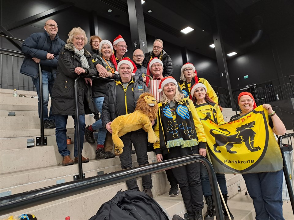 God Jul önskar lejonen! Efter sista matchen innan jul samlades "Lejonklacken" för att tacka vår lejonkung för väl utfört arbete med en liten julgåva i form av en "gottepåse". Tyvärr tappade HFK en poäng i matchen som slutade 25-25. Världens Barn! I dessa bistra tider kan det vara på sin plats att glömma poängtapp och serietabell en stund, därför har Lejonen beslutat att skänka en summa till Världens barn. Vi hoppas att det kan skänka lite glädje till några barn som har det svårt, inte minst i juletider. Seriefinal på onsdag! Innan det är dags för julmys och tomtebesök kommer vi att stötta HFK i sista bortamatchen innan jul och ta oss med Trossö Buss till de djupa skogarna i Alstermo och heja fram laget till en seger mot serieledarna AMO HK. Full buss rullar från staun på onsdag och då kommer lejonen att nafsa "bönderna" i bakhasorna, var så säkra. Var "bönderna" på jakt senast kommer vi att ge igen på onsdag. Kan HFK studsa tillbaka och ta en skrällseger uppe i dom djupa skogarna så är vi i allra högsta grad med i racet om seriesegern. Lejonen är laddade och kommer att ge allt för att HFK ska åka från "Grytan" med två poäng och se "Stockens" tomteluva ramla lite på sned inför julfirandet. Nu ger vi järnet på onsdag, Lejonen och HFK, Tillsammans är vi starka! HJÄRTA, GJÄDJE, GEMENSKAP!!