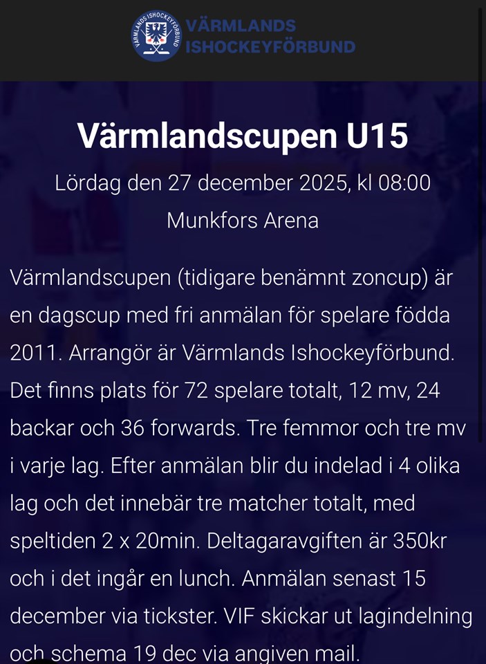 Fyll i din e-postadress för gratis uppdateringar om Hammarö HC U15