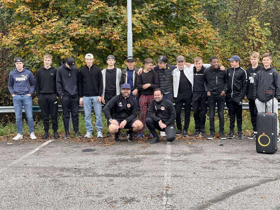Väl hemma efter två dagar i Albert Hall i Långared kan man inte sammanfatta annat än med succé. Killarna har varit oerhört goa mot varandra och ledare. Varje lag har tagit sig an både köksuppgifter och 5-kamp med bravur! Vi är oerhört stolta över hur de hjälpt till att få helgen så bra som möjligt! Anläggningen i sig var helt fantastisk med hallen, kök och övriga utrymmen. Perfekt för vårt ändamål. Vi inledde lördagen med ett träningspass i egen regi innan det var dags för lunch. Maten hade vi fått av SkolFood i Göteborg. Andra passet under eftermiddagen skulle vi få besök av en hemlig gäst. Gissningarna om vem det var stod mellan Felix Enesten, vår gamla coachkollega och Diegodigge. Det visade sig vara den senare. Digge driver ett innebandycenter i Göteborg där han tränar spelare och lag i innebandy. Han körde ett hårt pass med dem under drygt 2 timmar (!) Grymt lärorikt för både spelare och ledare! På kvällen käkar vi tacos till middag. Söndagmorgon inleds med frukost i hallen. Efter lite röj med sängar mm så har vi ett träningspass på 90 min med mycket av Digges övningar. Dock med lite lägre tempo, det var rejält möra grabbar. Lunchen bestod av hamburgare efter det har vi sista deltävlingen i vår 5-kamp. Den tävlingen har pågått lite då och då under hela helgen. Tills lut var det det vita laget som drog det längsta strået. Sista passet på agendan var en match mot IBK Alingsås P06/07. En match där helgens övningar gör sig påmind i både ben och huvud. Vi tappar till ett 1-4 underläge till tredje perioden. Där går vi in med en annan inställning, rullar boll och springer mycket. Det gör att vi vänder matchen och får med ett 5-5 resultat där vi göt två mål under de sista 2:15! Varav ett i PP! Riktigt stark avslutning! Vi packar det sista, duschar, städar och tömmer hallen för denna gången. Vid 17:30 kommer vi tillbaka till Bollebygd med ett gäng trötta men glada grabbar. Vi ledare vill Tacka samtliga som på ett eller annat sätt hjälpt oss under helgen! Ett extra stort Tack till familjerna Magnefors, Lantz och Janveden som handlat och lagat middag och lunch till oss! Till veckan är det träning som vanligt tisdag och torsdag. Första seriematchen ligger lördagen den 23 oktober. Vi börjar på hemmaplan i år och tar emot Södra Ving i premiären. Nu är vi igång! En Go Gäng // Tränarna regi innan P-06 Ib 10 okt 2021 1kommentar