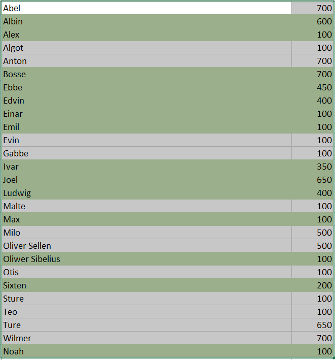 Hej! Det saknas fortfarande inbetalningar från några för grillkolsförsäljning och avslutningsmiddag som säsongen avrundades med. De spelare som inte har grön markering saknas det inbetalning för. Vi behöver få ordning på detta innan det är dags för säsongen igen! Sista datum att betala in är på fredag 28/7. OBS att pengarna ska swichas till lagets nummer, inte mitt privata.