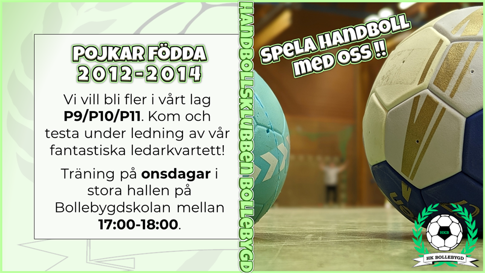 📢 POJKAR FÖDDA 2012-2014 📢 Vi vill bli fler i vårt lag P9/P10/P11. Kom och testa! Träning på onsdagar i stora hallen på Bollebygdskolan mellan 17:00-18:00. P11 (2013-2014) 22 sep 2023 0kommentarer
