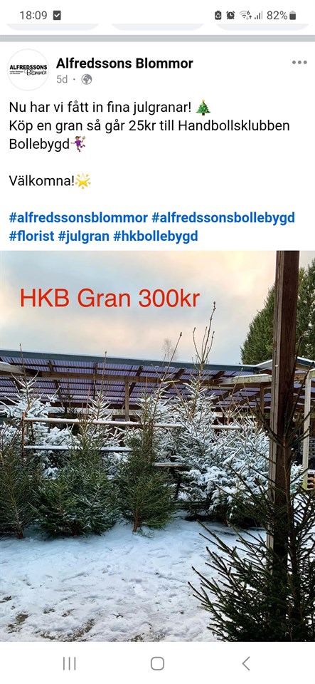 Alfredssons blommor har toppengranar, 25 kr/gran går till klubben! Tack Alfredssons Blommor !