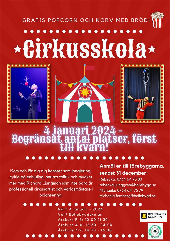 HK Bollebygd i samarbete med Bollebygds Kommun arrangerar cirkusskola den 4 januari.