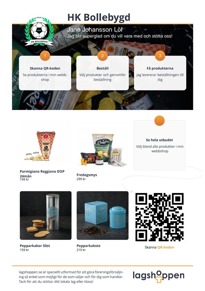 Stötta våra barn och ungdomslag så de kan åka på kostnadsfria cuper och läger! I fiket fnns kakor och herrgårdsljus, bara att komma förbi under våra matcher och köpa på sig. Hos lagshoppen säljer vi Parmesan och Pepparkakor, beställ senast 26 november via länken nedan. Leverans ca 1 december. https://lagshoppen.se/api/shop?anv=3662jane Vid frågor kontaktamig, Jane Löf 0725-681491