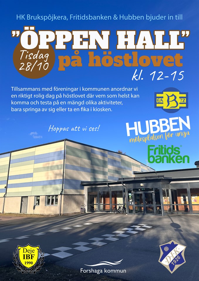 Kom och häng i sporthallen och prova på massor av roliga aktiviteter tillsammans med oss från HK Brukspöjkera, Fritidsbanken , HUBBEN, Deje IK och Deje IBF.