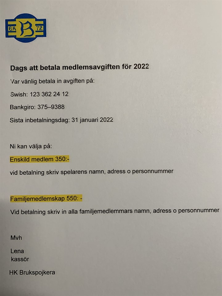 • Dags för medlemsavgift 2022!