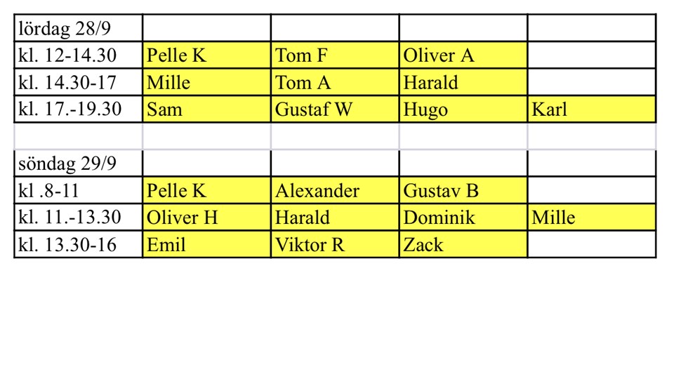 Tanken är att om din son inte spelar denna helgen så kan han stå i cafét annars är det föräldrarna som får pitcha in. Tanken är att alla spelare ska bidra med spelande eller jobb eftersom alla intäkter går till laget och planen är att kunna sponsra varsin Cliff huvtröja med vinsten. Därför är det kul om alla är på plats och stödjer laget och hejar fram sitt lag.