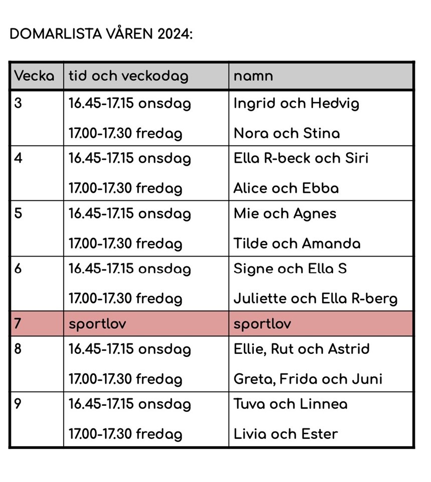 Här är schema för dömning på F12:s träningar😊 F14 3 mar 2024 0kommentarer