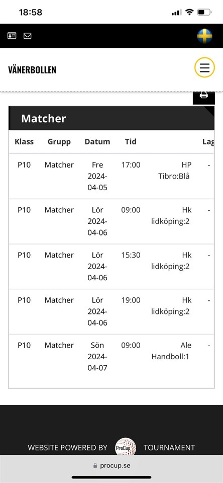 Nu är vi inne på de två sista veckorna av handbollssäsongen! Denna vecka har vi träning imorgon tisdag men EJ på skärtorsdagen. Nästa vecka har vi också bara träning tisdag och sen spelar vi Vänerbollen fredag-söndag! Vi har blandat grabbarna och gjort två nya lag, se nedan. Ni ser också matchtiderna. Matcherna är 2x10min. Alla våra matcher spelas inne i arenan så vi har även möjlighet att heja på andra laget!! På lördag mellan matcherna, kl 12.30, samlas vi och äter tillsammans på Roma, detta betalas av vår lagkassa!! Nu laddar vi för en fantastisk avslutning på denna säsong!! P12 25 mar 2024 0kommentarer