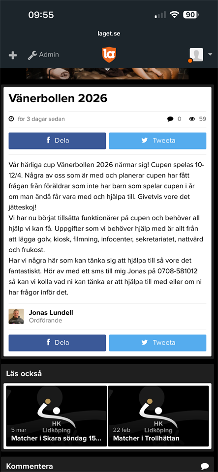 Klicka på bekräftelselänken i det mejl vi skickat dig för att börja ta emot uppdateringar från HK Lidköping F8.