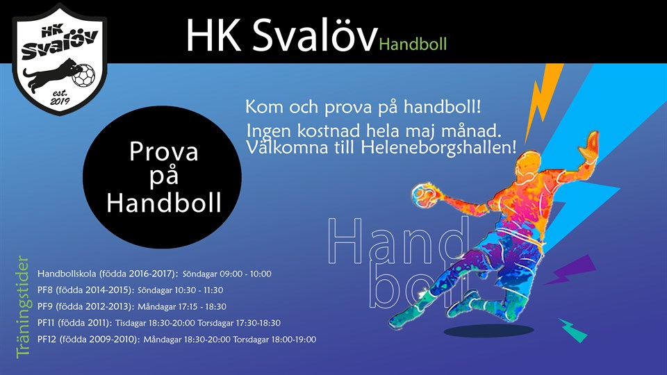 Hej! Nu går vi ut med kampanjen "Prova på i maj månad". För att få in fler i den fantastiska sporten handboll går vi nu ut att hela maj månad är gratis att testa på handbollen. Vi hoppas att detta kan leda till att fler tar chansen att testa på sporten. Vi tackar Karina för den suveräna idéen! /Styrelsen HK Svalöv 1 maj 2023 1kommentar