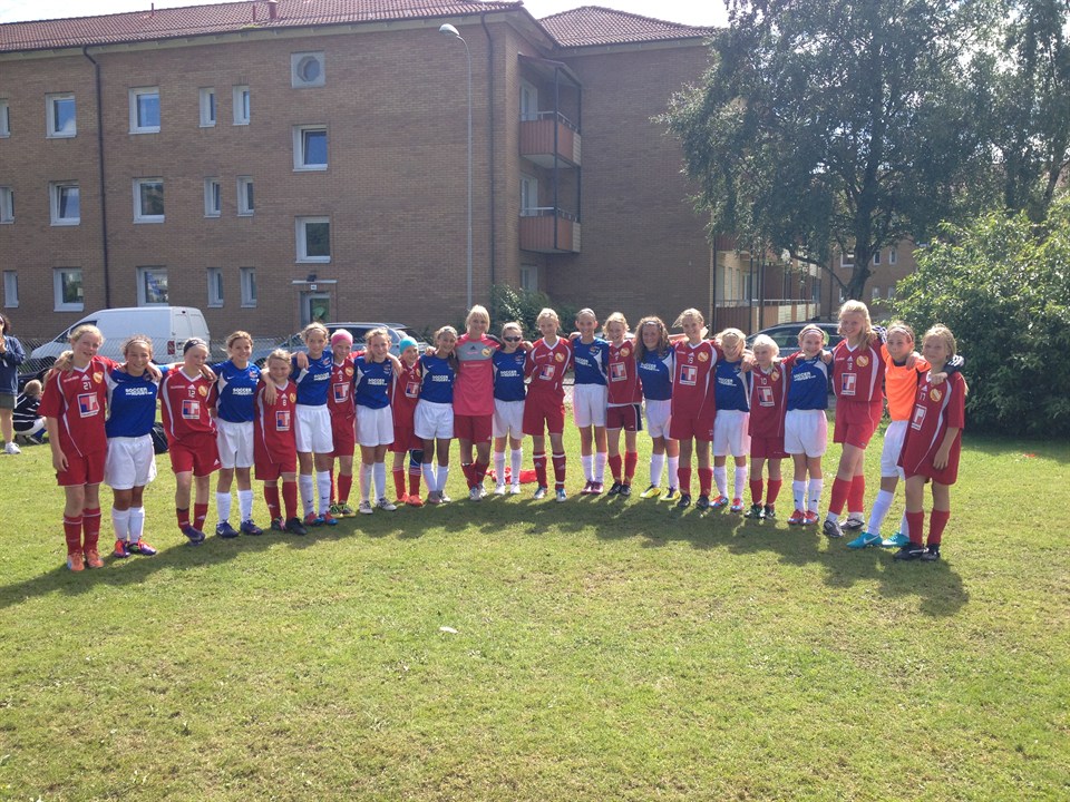 Det skulle bli riktigt spännande å kul att möta New England Cardinals från USA som turnerar runtom i Europa på olika cuper..Tjejerna var taggade från start och gjorde en gedigen insats mot ett duktigt gäng tjejer,,Cardinals äger väl det mesta av spelet men vi kämpar på väldigt bra i första halvlek,,som dock NEC leder med 2-0,,i andra går vi för en reducering och skapar flera bra chanser , men istället blir det 0-3,,Vi får en frispark i bra läge,,Emmy stegar fram och skjuter en stenhård boll mot bortre stolpen som Sanna till slut kan mösa in mål,,YEEESS !!! gött tjejer det var ni väl värda !!..Vi viker inte ner oss alls i matchen utan tuggar på och försöker verkligen,,men Cardinalstjejerna är duktiga och kan göra några mål till på oss..Idag kan alla tjejer sträcka på sig för en trots förlusten en bra match,,,Nu möter vi Enskede imon kl. 09.40 samma plan,,Rött ställ på,,men tag med den vita oxå.. Putte