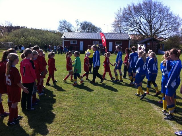 Hemmapremiär,,kanonväder och en storpublik väntade tjejerna denna dag med duktiga Eriksberg på motståndarsidan..Vi drar igång och tjejerna äger första 17-18 minuterna med fantastiskt bra spel och framför allt utnyttjar man kanterna på ett mycket bra sätt,,men bollen vill inte in efter flera bra chanser..Tjejerna i Eriksberg är stora,tuffa och spelskickliga så vi får jobba stenhårt hela tiden,,de blåe gör oxå 1-0 innan paus,,Peptalk å vatten,,bara att fortsätta med samma fina spel i andra tyckte vi ledare..Vi gör det,,men Eriksberg jämnar ut spelet mer å mer så mycket kamp på mittfältet mestadels..Vi kommer upp i ett fint anfall å inlägg som till slut Kajsa trycker in efter lite flipper i deras straffområde,,GÖTT å Rättvist !!! Matchen slutar 1-1 som speglar matchen ganska mycket tycker jag,,men MYCKET kredd för tjejerna som gör en Gedigen insats idag.. Over n Out Putte Ps..Eriksberg gillade Hönö så mycket att dom kommer te Hönölulu Cup senare i Maj