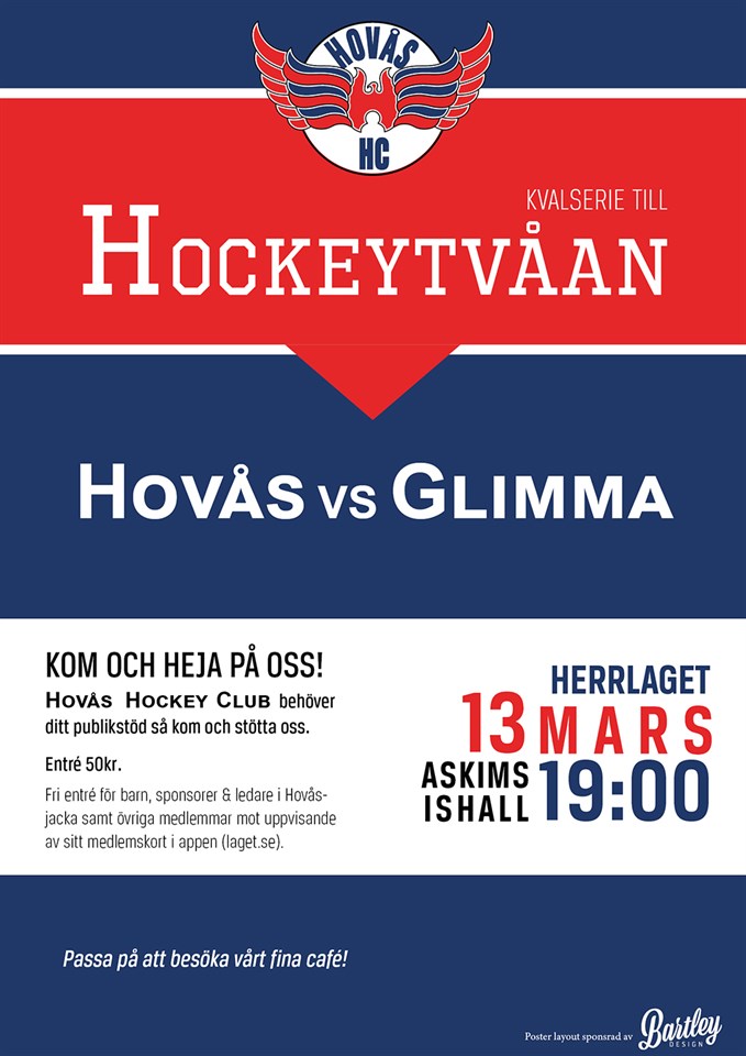 Glimma kommer på besök fredag 13/3 med matchstart 19:00 Just nu leder vi kvalserien till HockeyTvåan 20/21, men det kommer att bli knallhårt hela vägen. Kom ner och stötta Hovås Hockey i sista hemmamatchen för säsongen. Herrlag 11 mar 2020 0kommentarer