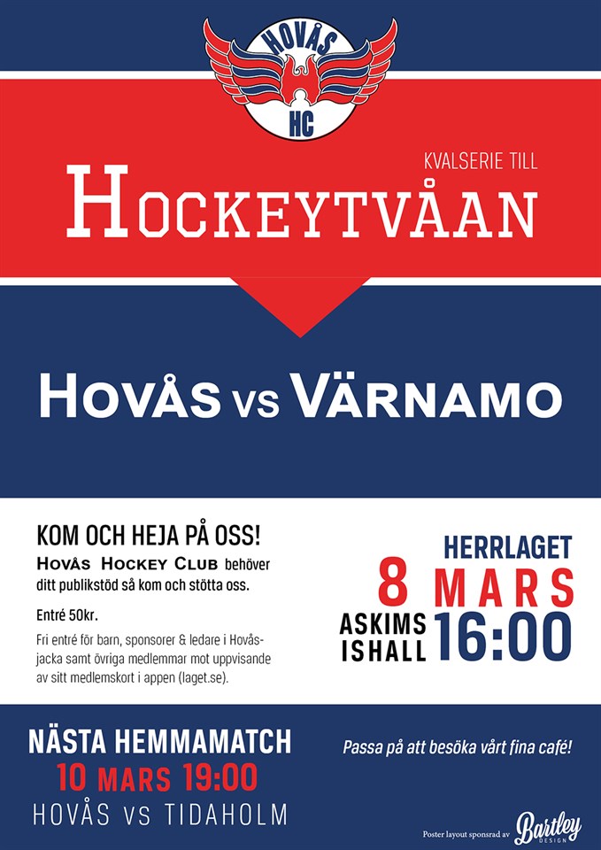 • Kval HockeyTvåan söndag 8/3 kl 16:00