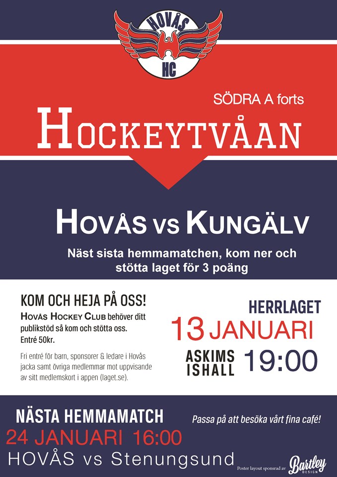• Nästa hemmamatch mot Kungälv 13/2 kl 19.00