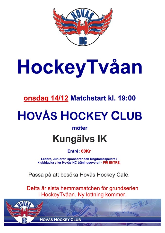 Nästa hemmamatch 14/12 19:00. Kungälvs IK kommer på besök