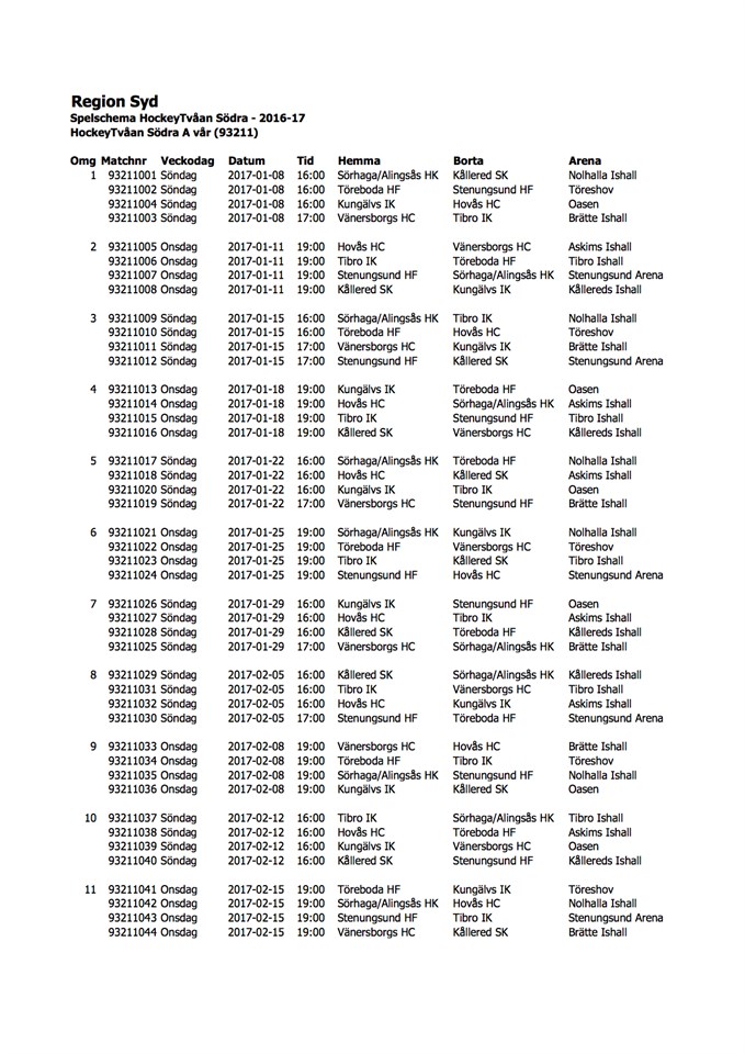Nu ligger alla matcher i HockeyTvåan Södra A Vår i kalendern.