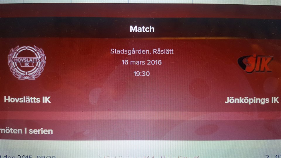 Dessa spelar hemma mot JIK P01 på ONSDAG 16/3 (matchstart 19:30): Adam, Albin, Anton E, Christoffer, Darshan, Hampus, Hugo, Isac, Jakob, Kim, Leo, Olof, Rasmus, Tobias & Wille. Samling 18:45 i Stadsgården. Glöm inte RÖD matchtröja, glasögon (obligatoriskt denna säsong), klubba, vattenflaska m.m. Kiosken bemannas av föräldrar till Jakob, tag med något bakat samt en termos kaffe. Sekreteriatet bemannas av Asbjörn & Mikael. Denna match är flyttad från lördag 19/3 (08:30) och kommer att coachas av Max Gustafsson (P00), då ingen av övriga coacher är disponibla. Matchen spelas alltså på vår träningstid, således ingen träning på onsdag. Hälsningar Ledarna