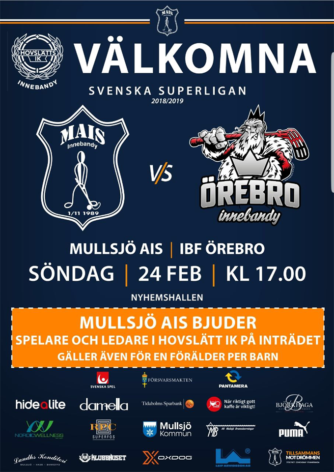 Anmälan till superligamatchen Mullsjö vs Örebro 24 februari