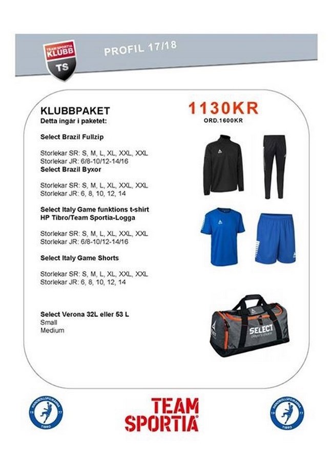 Onsdag 20 september 17.00-19.30 finns Emil från Team Sportia på plats i sporthallens cafeteria för att ta emot beställningar av bollar, träningströjor, shorts, overaller, väskor och andra profilprodukter för HP Tibro. Varmt välkommen! OBS! Priser och produkter kan ha mindre avvikelser.