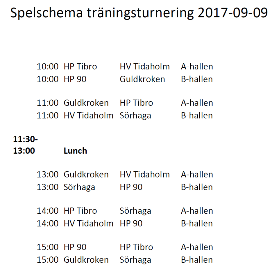 SPELAS I TIBRO SPORTHALL... VÄLKOMNA!
