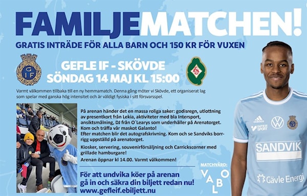 Erbjudande från Gefle IF FF om familjematch söndag 14/5