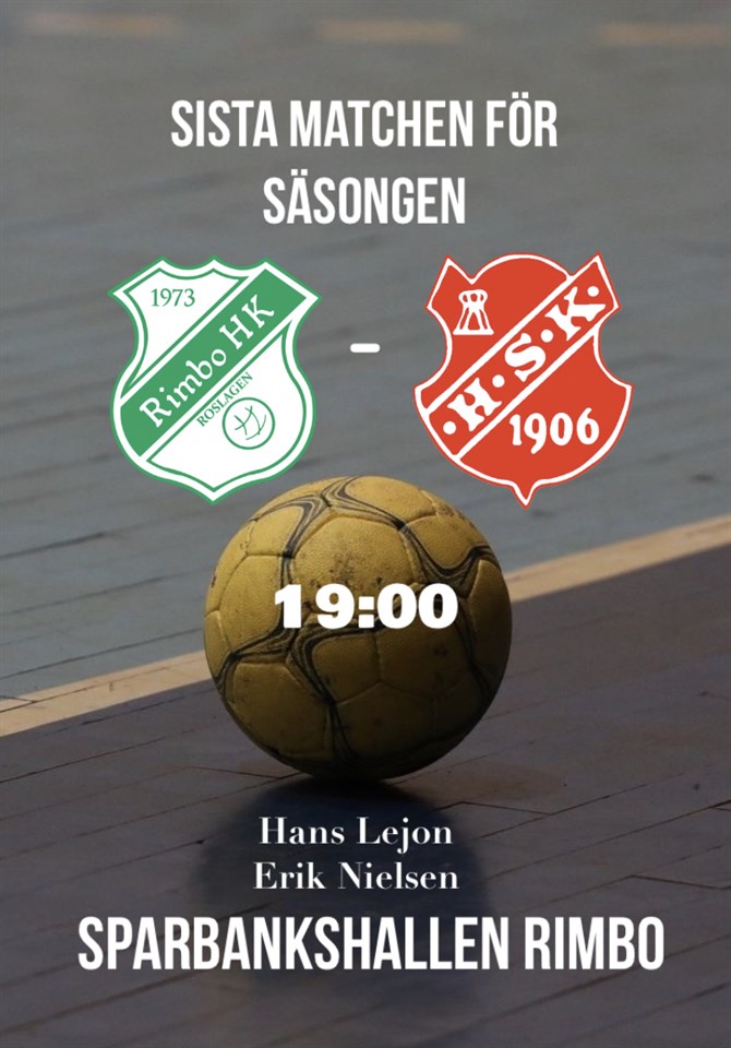 Vi torskar sista matchen för säsongen mot Rimbo, och får spela division 2 nästa säsong! 45-28 (19-15) Bäcklins ord efter sista matchen i div1! ”Vi står upp helt OK i första, bortsett en liten dipp på ett par minuter, där gapet som är med in i vilan uppstår, och representerar sunda och bra grejer med bollen och i våra val. Initialt har vi lurigt att hitta riktig ’edge’ i approachen till uppgiften men efter lite korrigeringar hittar vi skapligt ändå. I paus har vi samsyn på vägen framåt i matchen; men gör tyvärr en rad individuella vurpor som låter matchen tippa över till Rimbos fördel, tvärtemot initial tanke om lägre tempo och mycket flödesstopp, och vi kan aldrig riktigt hitta tillbaka till våra grundbultar och ramar utan tillåter oss bli sprungna på när vi stressar och ger bort boll. Känns som det har sagts förut; men uppställt matchar vi skapligt - men blir obönhörligt straffade på i första- & andrafasomställningar; vilka såklart hade känts roligare att ha kunnat undvika.. Rüden bär bindeln med den bravur, Erik på v6 gör sitt första mål i div. 1-sammanhang och Rasmus från Krutholmen i påsen gör det vi kan förvänta oss och mer därtill, så vi landar seriespelet 23/24 på (tyvärr) ’in-vand’ not och får slicka sår, och komma igen. Summa summarum har vi ömsom vin ömsom vatten visat att vi har såväl individuell, som kollektiv, styrka i år; men de som vet vet; och vi kan inte riktigt tävla hela vägen då, och det känns surt. Särskilt med tanke på den otroliga dynamik som laget ändå besitter och jag tror jag talar för långt många fler än mig själv när jag säger att vi haft jäkligt roligt på vägen, ändå. Vi syns snart igen, division 1! ” När HSK??