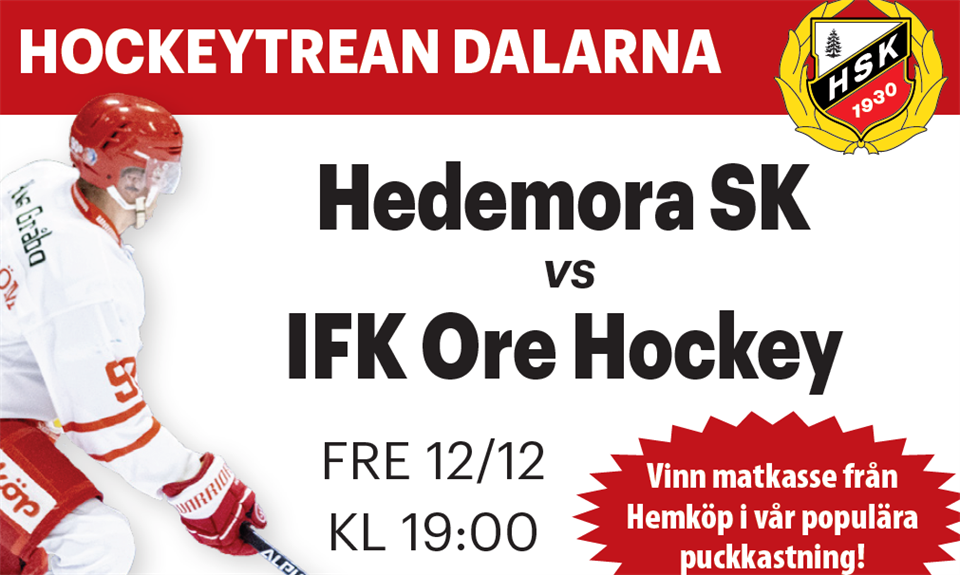 Köp dina puckar i entrén innan matchen och var med och tävla om matkassen från Hemköp Hedemora