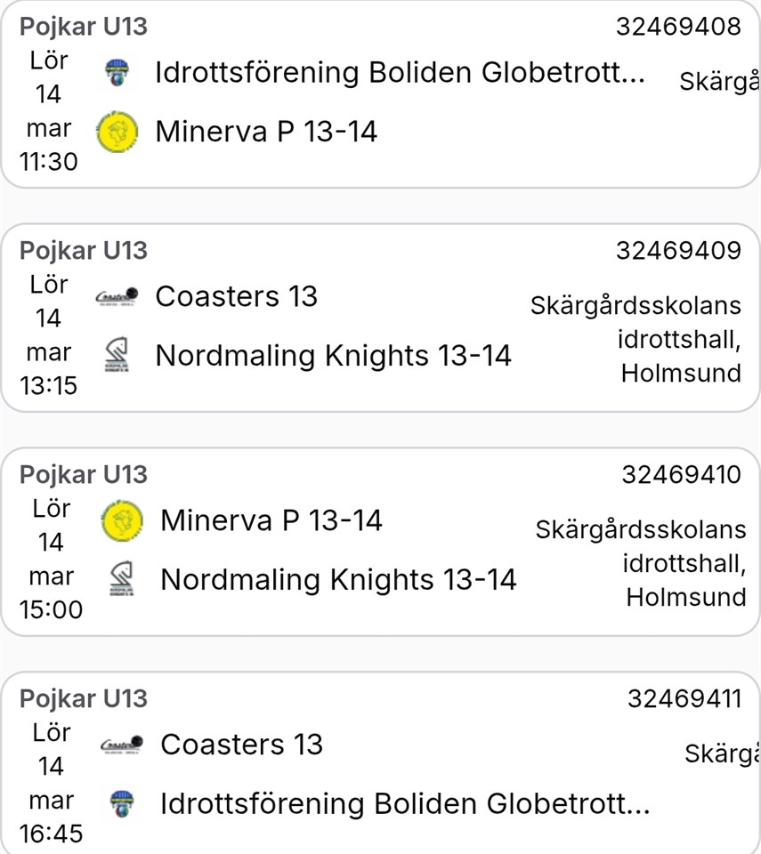 Klicka på bekräftelselänken i det mejl vi skickat dig för att börja ta emot uppdateringar från Coasters Holmsund-Obbola HU13.