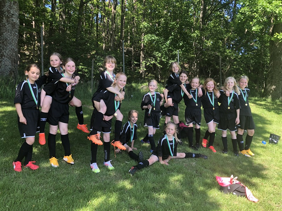 En molnig morgon mötte lirarna på fotbollsplanen i ubbhult- där ombyte till matchställ skedde. Framme vid Hammarvallen i Kungsbacka möttes laget av strålande 🌞. Så här glada var alla efter 3 hårda matcher 😎😎😎 och medalj. F12-13-14-15 4 jun 2022 0kommentarer
