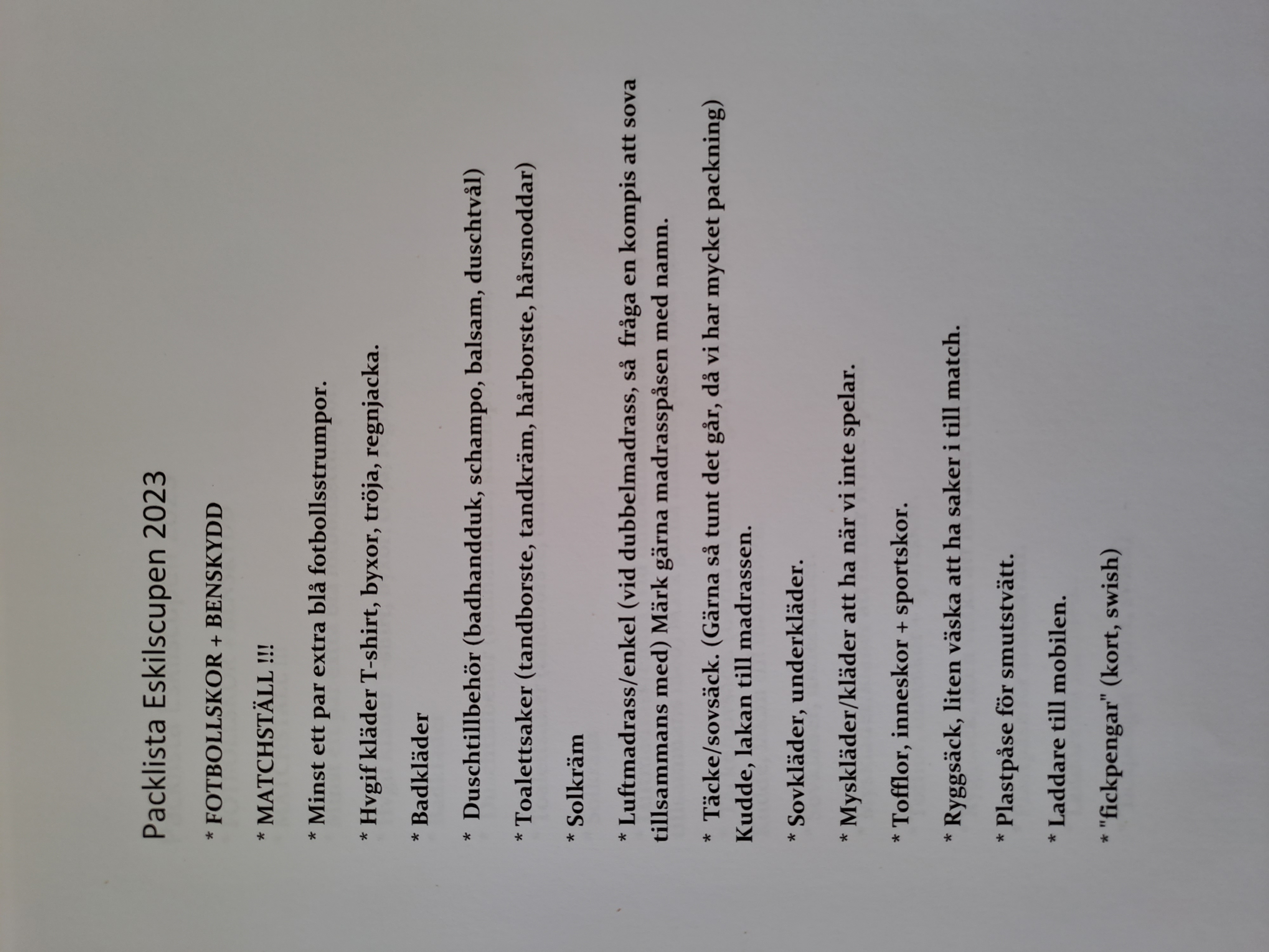 Följ oss för uppdateringar| Packlista Eskilscupen 2023 1 | |