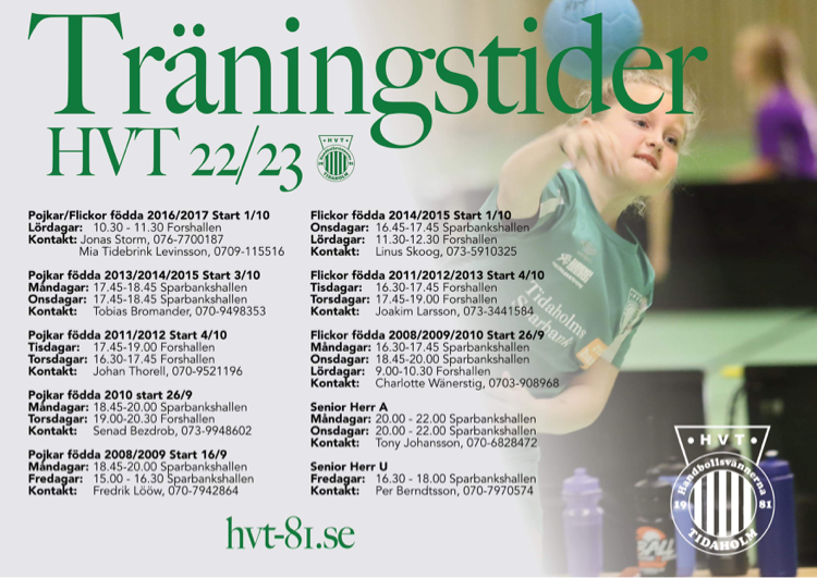 Den 3 oktober är det dags för handboll igen! I år har vi träningstid Måndag och onsdag 17,45-18,45 men vi försöker ha en samling 17,40 så vi kan utnyttja våran tid i hallen på bästa sätt och sen är tanken att vi avslutar träningen vid sidan av planen efter träningstidens slut. Hjärtligt välkommen! P11/12 14 sep 2022 11kommentarer