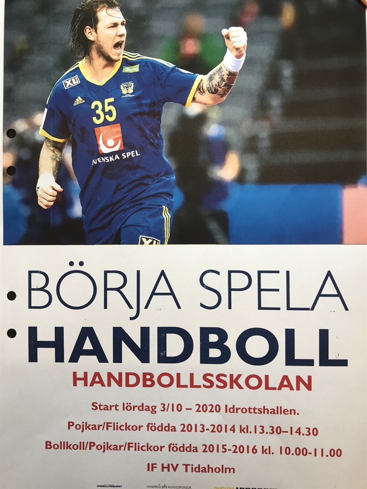 Hej på er, Välkomna til IF HV Tidaholms handbollsskola 20/21. Vi startar Lördagen 3 oktober i Idrottshallen Tidaholm. Flickor/Pojkar födda 2013/2014 kl 13.30-14.30 Flickor/Pojkar födda 2015/2016 kl 10.00-11.00 Till Föräldrar. Pga rådande omständigheter kommer inte omklädningsrummen vara tillgängliga. Kom ombytta och stanna hemma om du har minsta symtom. Vi ser att endast en förälder följer med för att minska antalet personer i hallen. Lennart Flarup