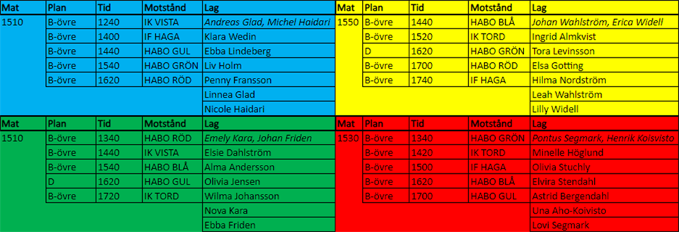 Hej allesammans! Nu börjar det dra ihop sig inför cupen på Lördag. Eftersom alla lagen har olika speltider så kommer separata kallelser till respektive deltagare skickas ut med samling 30 minuter innan första matchen. Matchtröjor och medicinväska kommer vi ledare att ha med oss och dela ut vid samlingarna. Varje deltagare skall ha med sig egna shorts och strumpor, lämpligtvis blå om man har det, då vi enbart kommer att ta med oss matchtröjor för att slippa omklädningsrum och ombyte. Utöver detta så skall man ha med sig är lämpliga skor, benskydd samt vattenflska. Tjejerna kommer att få hamburgare till lunch, tid står i schemat, men tänk på att det kommer att bli en lång dag så det är bra med lite extra vätska och tilltugg mellan matcherna. //Ledarna F17