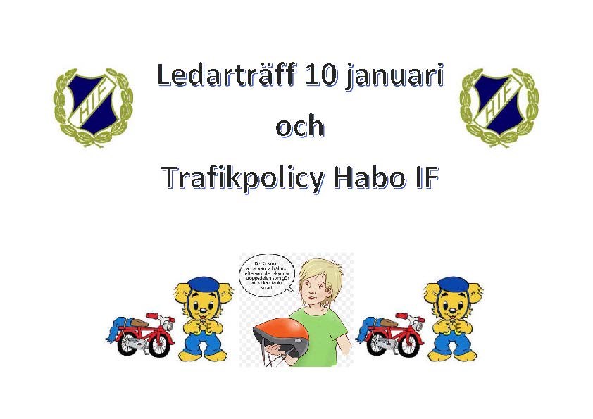 Snart nytt år och Habo IF vill passa på att skicka en Julhälsning redan nu. Vi gör det med lite trafikinfo och inbjudan till ledarträff. Vi börjar med att glädja er med att gång och cykelvägen, som tidigare slutat vid Tennishallen, i det närmaste är klar och är nu förlängd ända bort till friidrotten. Vilket vi är oerhört glada för. Samtidigt så har vi fastslagit en ny Trafikpolicy som ni kan ta del av här Tisdag 10 Januari bjuder vi in till årets första ledarträff. Plats: St Johannes kl 18,30 Vi vill ha alla ledare på plats. På Agendan: Ombyggnation – Nybyggnation Policy Cupen Ungdomsarbetet Hemsida Info från Herr och Dam Vi kommer att bjuda på enklare förtäring så vi behöver anmälan via mail till kansliet: info@haboif.f.se Märk mail: Ledarträff Skriv i mailet Namn och lagtillhörighet. Om ni mot förmodan inte kan delta vänligen meddela även detta till kansliet. Styrelsen Habo IF Herr junior 15 dec 2016 0kommentarer