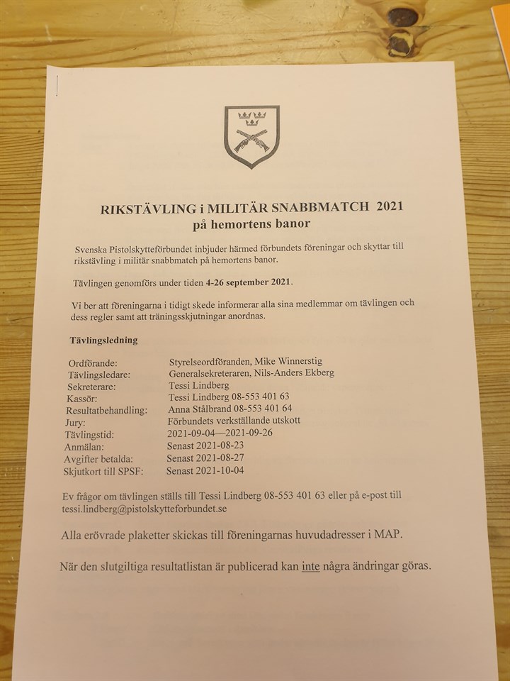 Snart är det dags för Militär snabbmatch på hemortens banor, Detta är en rikstävling som skjuts på din egen hemma bana mellan 4-26 September. Anmälan ska in senast 23/8 och det tar jag hand om. Jag behöver bara veta vilka som vill delta? Ni kan anmäla er i kommentarsfältet nedan innan 22/8 så löser jag resten. Mer info kring tävlingen hittar ni på pistolskytteförbundets hemsida. Mvh Rickard
