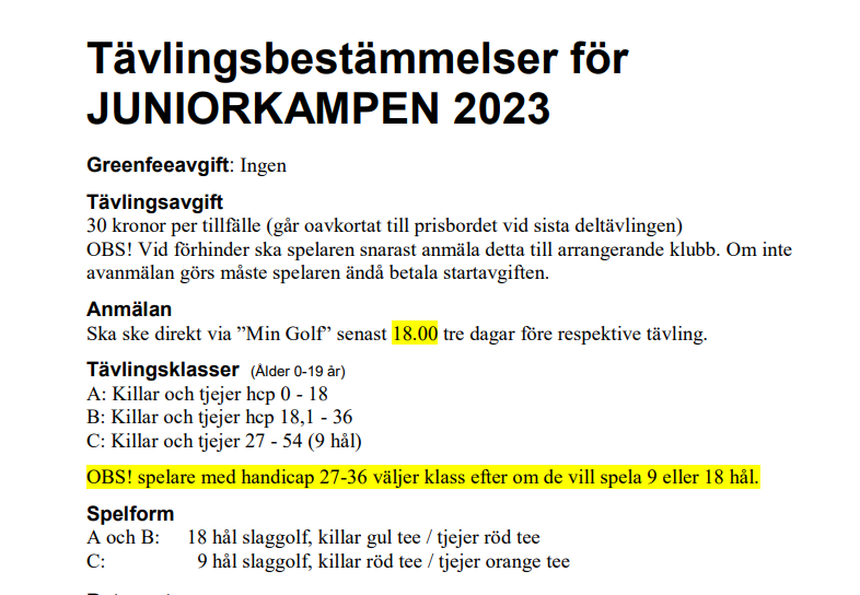 Hej på er! Se till att anmäla er till Juniorkampen på Hagge nu på lördag. Det finns tre klasser och val att spela 9 eller 18 hål. Se regler i bifogad fil.
