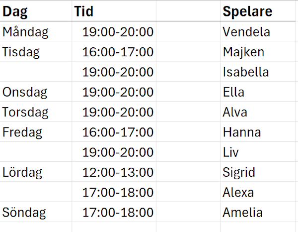 RapporteraKan antingen Vendela, Majken eller Bella ta Amelias tid på söndagen så kan vi måndag eller tisdag?