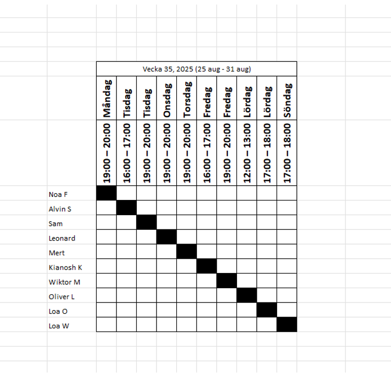 Anmäl att ni noterat er tid. Kan ni inte får ni själv ta kontakt med någon i laget som kan byta med er.