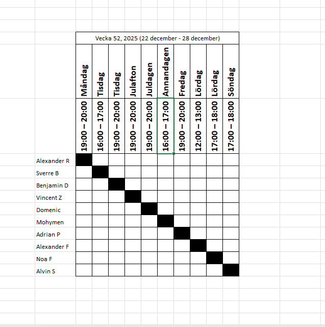 Jag har gjort ett schema utifrån turordningen som gäller. Kan man inte är det viktigt att byta.