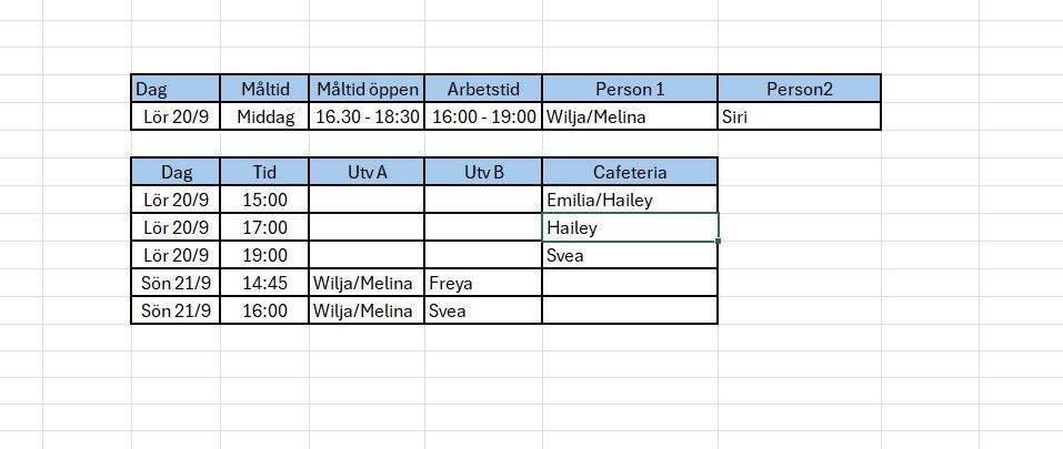 Bifogat arbetsschema inför länscupen i helgen, om ni inte kan så får ni byta med varandra