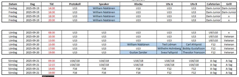 Västerås IK Ungdom:3 (hemma) | 19 okt, 16:00 |